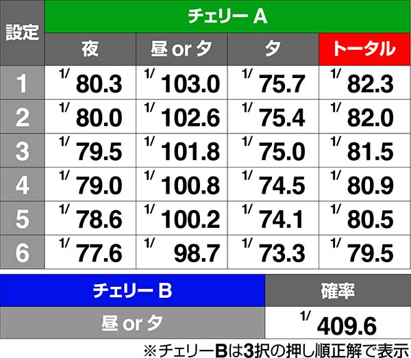 チェリーは設定差が小さいので、補足的にカウントしよう。