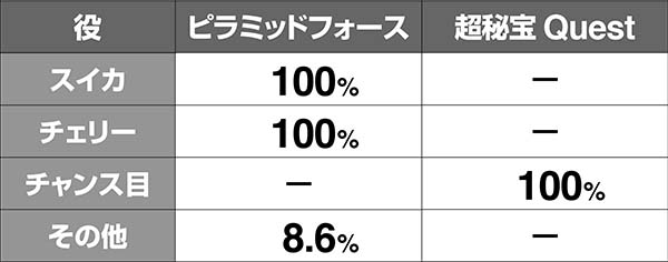 シングル7揃いはART+ピラミッドフォース確定、ダブル7揃いなら超秘宝Questが確定する。
