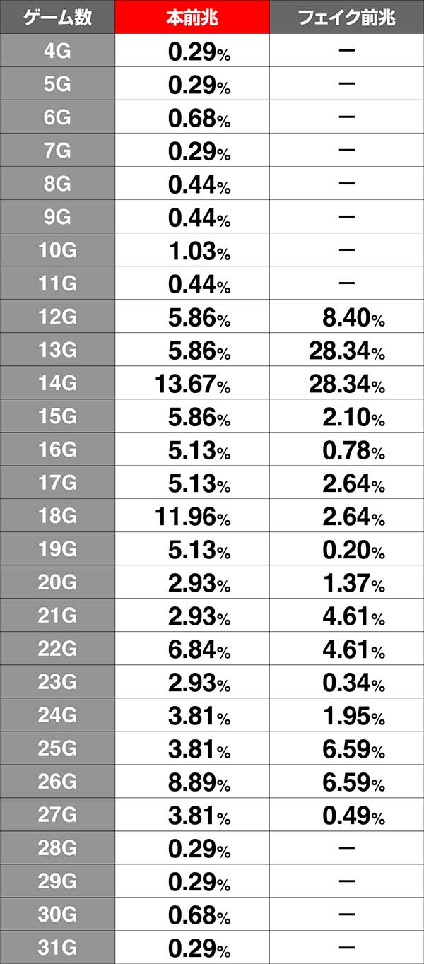 オヤジの登場までに最短で4Gかかるので、判別に使えるのは最長で5G目からボーナス終了までの25G間だ。