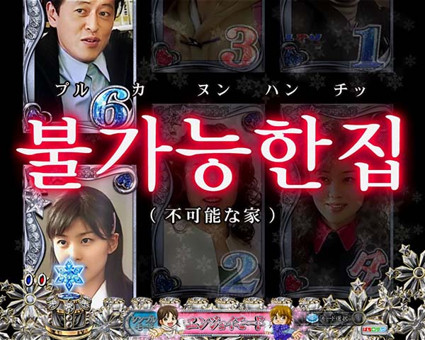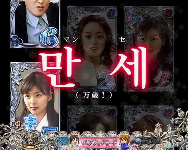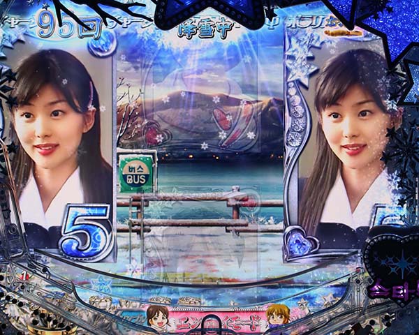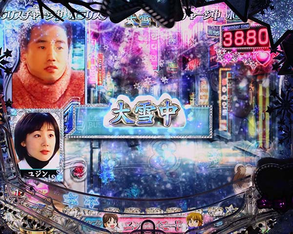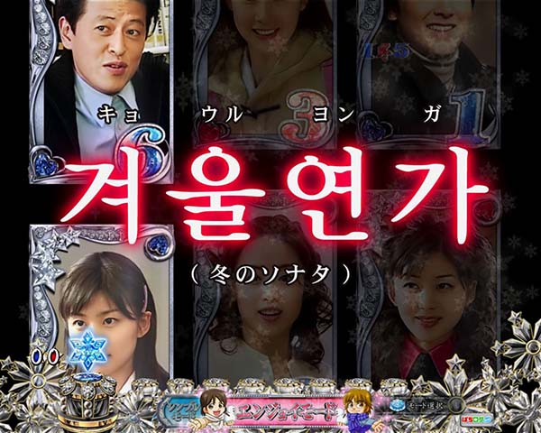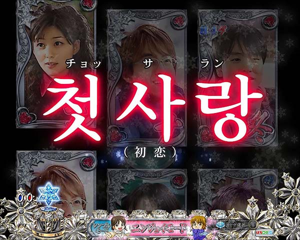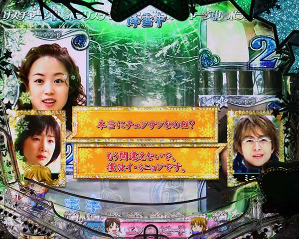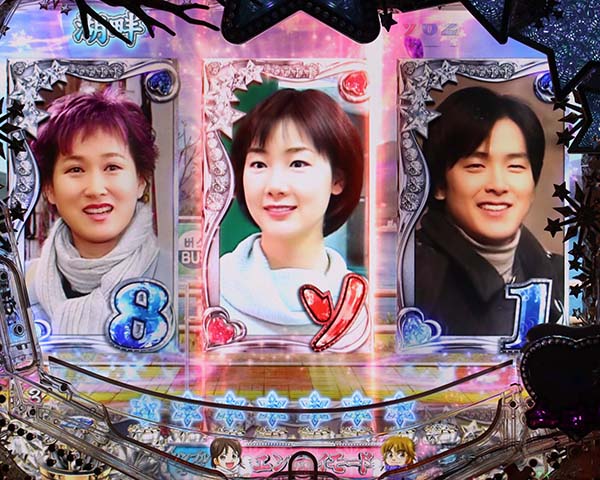 原作とパチンコがともに大ヒットした「CR冬のソナタ」が帰ってくる! 初代を踏襲した確変突入率62%のシンプルな確変ループタイプ。出玉ありの大当りはすべて16Rと、遊びやすさも忠実に再現されている。 初代でおなじみの出玉なし確変後に突入する専用モード「緊急入院モード」も搭載。メガポラリスギミックや枠の上部から飛び出すハートギミックなど、あらたな要素も追加されている。 |