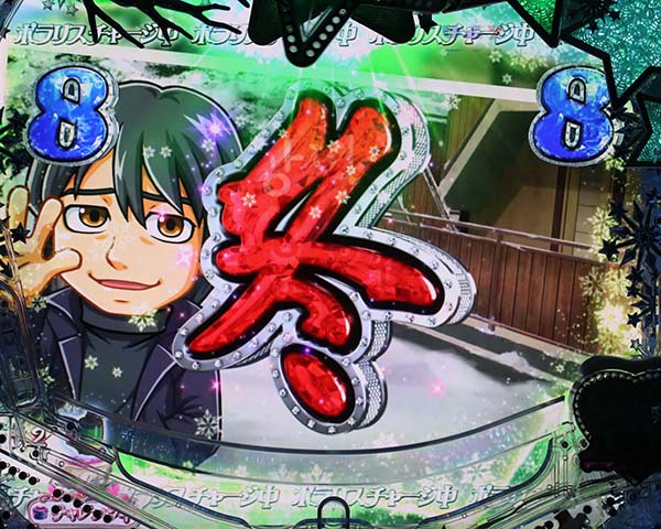 ポラリスチャージ予告発生中は液晶に帯が表示される。