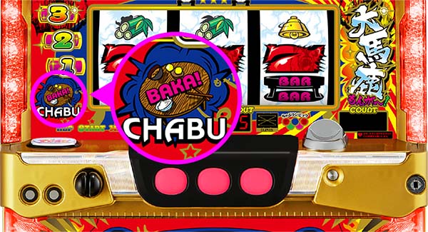 『BAKAも〜んランプ』点灯によるボーナス告知がメイン。カットインと同様にレバーONから第3停止ボタンを離すまでワクワクできる。