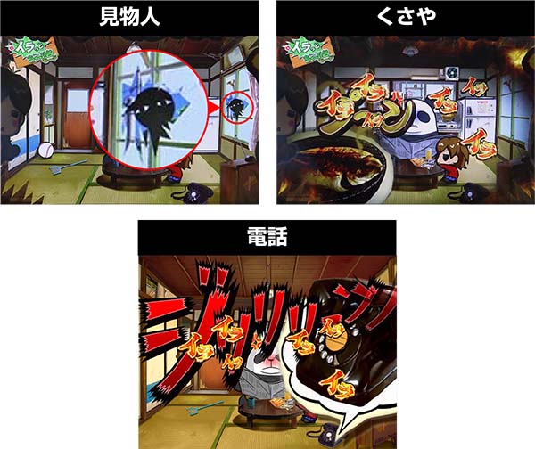 モードに応じてボーナス告知までの演出が多少異なるが、どのモードもお父さんがちゃぶ台をひっくり返せばボーナスが確定する。