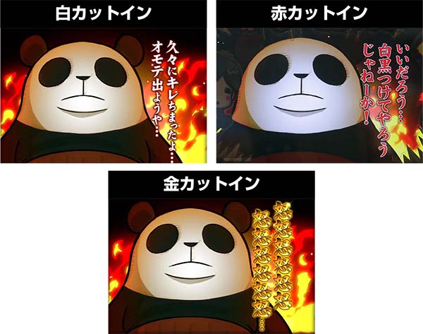 3種類あるカットインが発生すればボーナスのチャンス。白<赤<金の順にアツく、金ならボーナス確定となる。