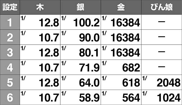 BIG消化中にひっくり返すちゃぶ台は、高設定ほど銀や金が出現しやすい(通常は木)。ちゃぶ台ではなく、びん娘が出現すれば設定5以上が確定だ。