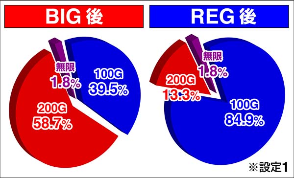 BIG後かREG後かによって、RTゲーム数の比率が異なる。