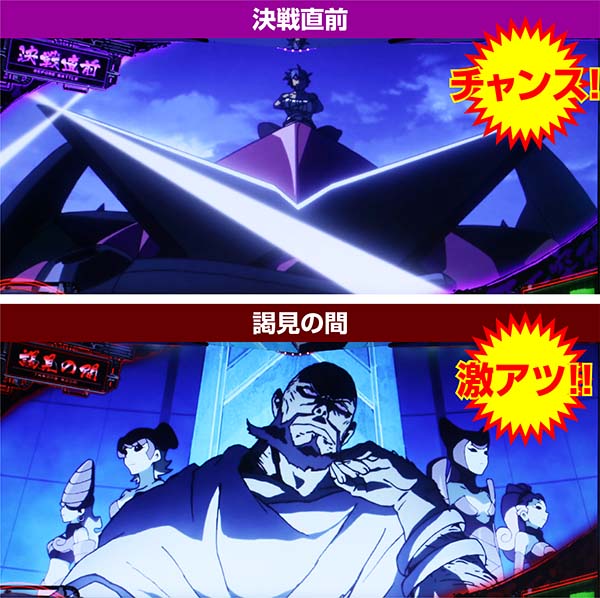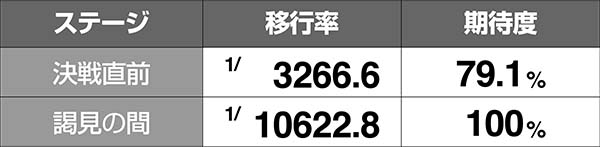 決戦直前と謁見の間は、おもにボーナス示唆として移行。移行頻度はかなり低いが、ボーナス期待度は高い。