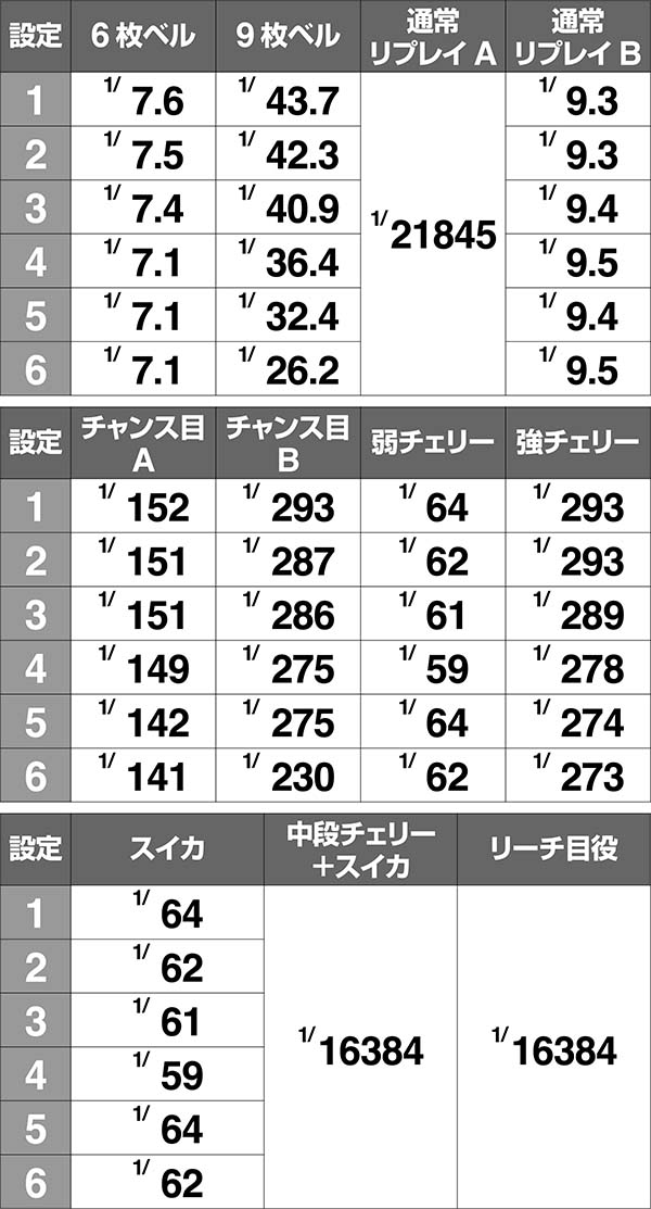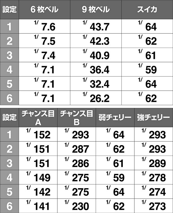 ●設定差のある小役確率