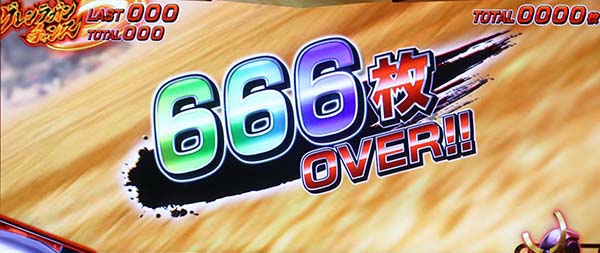 1000枚突破時に666枚OVERが出現…設定6濃厚