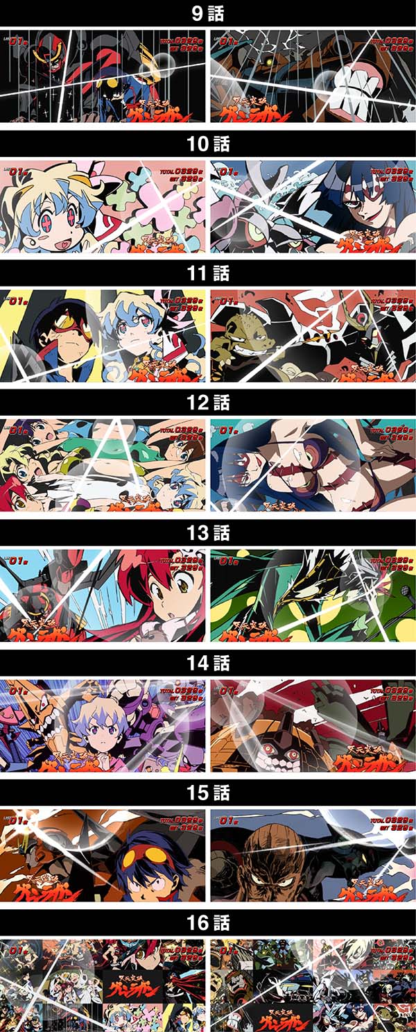 16話は、1〜15話までのアイキャッチが16分割されて出現する(Aは味方側、Bは敵側のキャラ)。