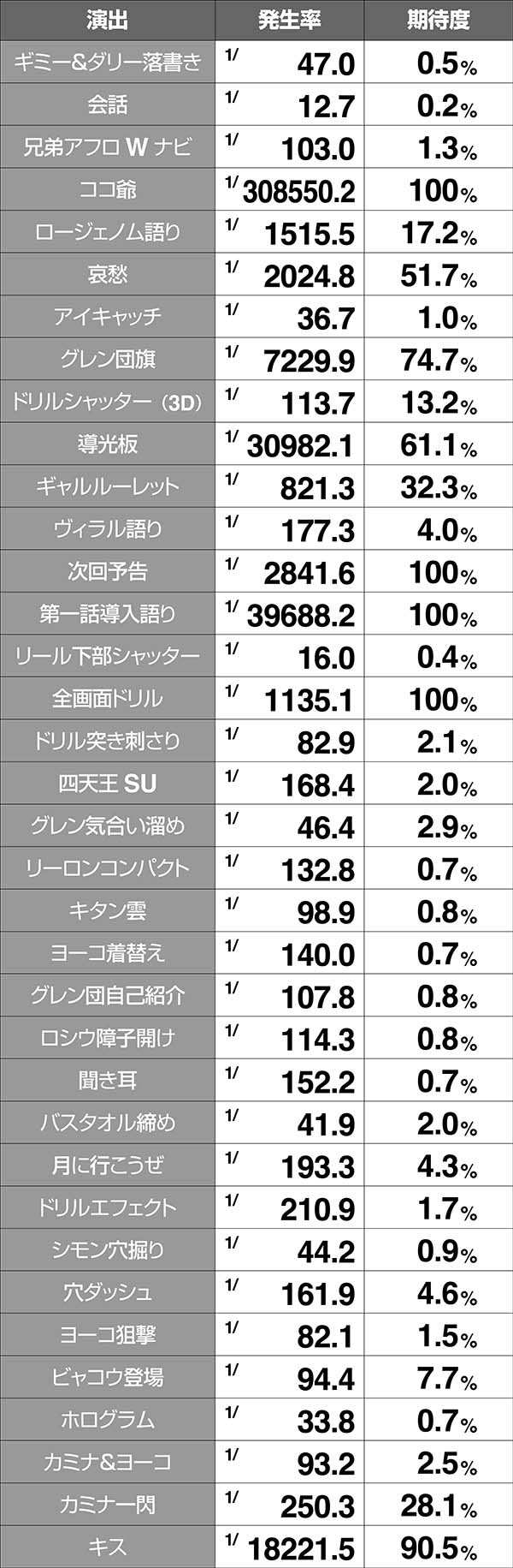 ●RT中の演出発生率と期待度