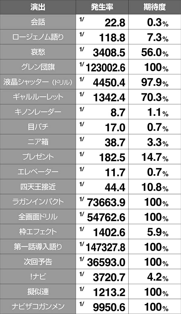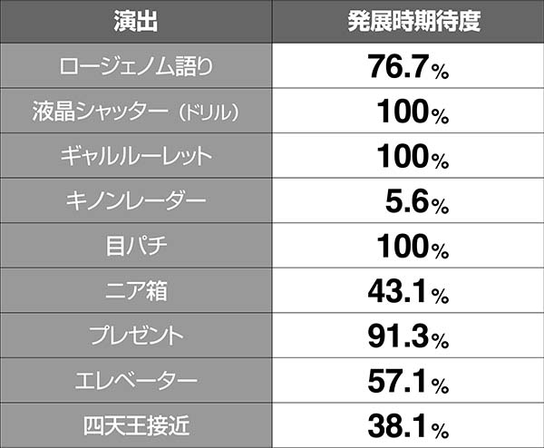 RT中の演出発生率とボーナス期待度