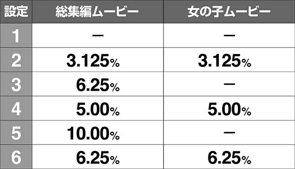 ●設定を示唆するムービーの出現率