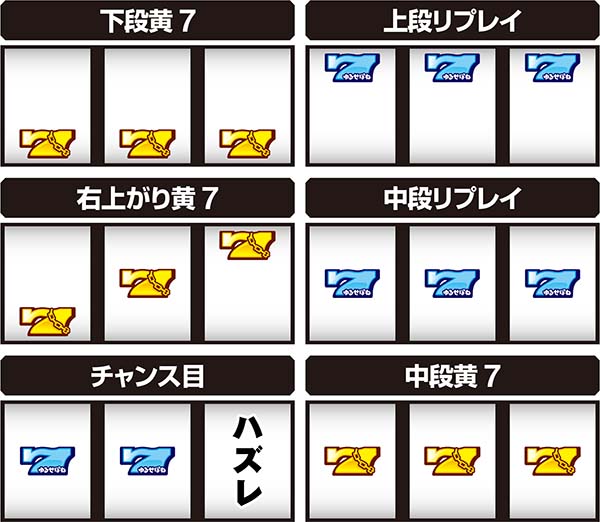 下段黄7<上段リプレイ<右上がり黄7<中段リプレイ<チャンス目<中段黄7
