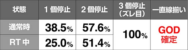 従来シリーズのGODよりも確率が5倍アップ。GOD消化後に必ず700GのRTへ突入する。