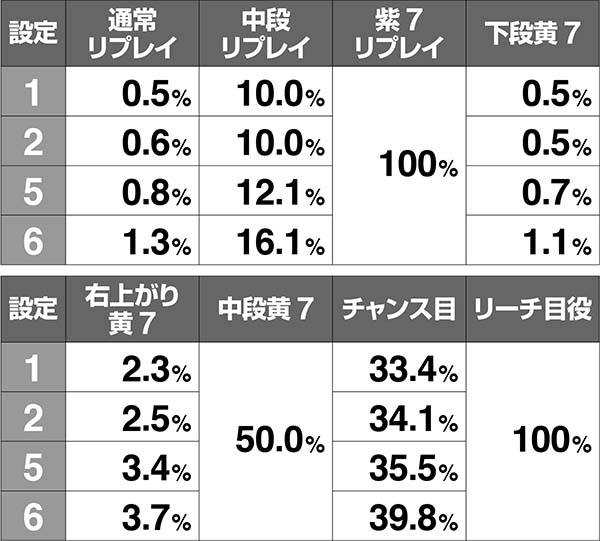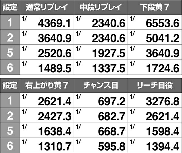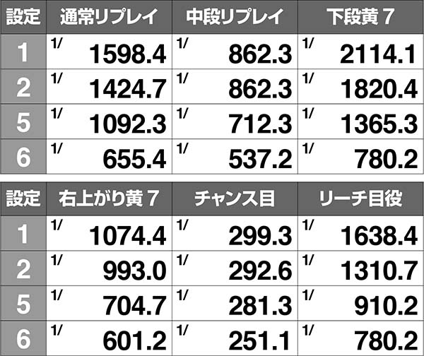 通常リプレイや下段黄7から複数回当選すれば高設定の期待大だ。リーチ目役の出現回数もしっかりとチェックしておこう。