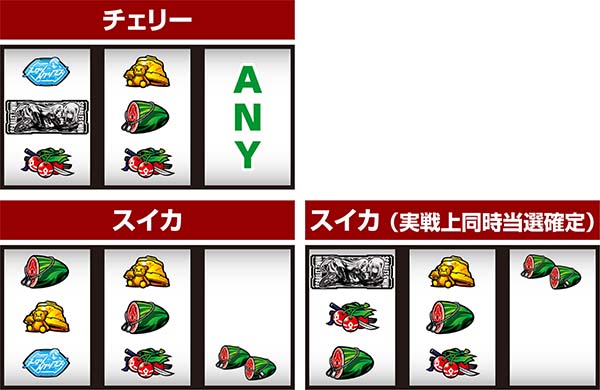 ボーナス当選のメインとなるスイカは、連続演出に発展するタイミングによって期待度が変化する。