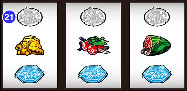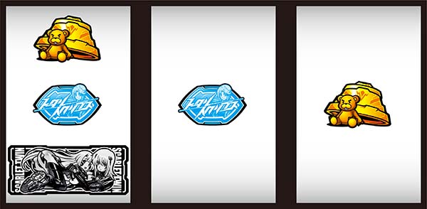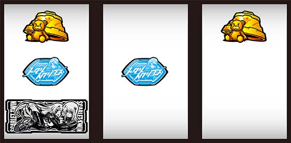 | 機種概要 | 最大400Gの超重量級RTを搭載したボーナス+RTタイプ。RTのゲーム数はBIG後に移行するジャッジメントアタックで引いた突入リプレイで決まり、BIGの種類でロングRT突入の期待度が変化する。純増が約0.7枚/Gと多く、ボーナスなしでもある程度の出玉増加が見込めることも特徴的。CBではRTがリセットされないので、RT中にどれだけCBを引けるかもまとまった出玉獲得のポイントとなるだろう。 |