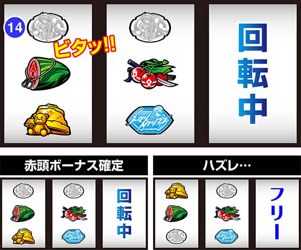 通常時と異なり、RT中は基本的にスイカ成立後のプチフリーズが発生しない。