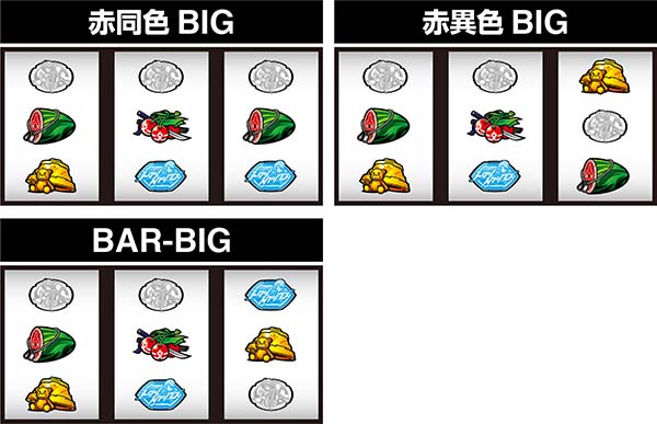 枚数に違いはないが、BAR-BIG<異色BIG<同色BIGの順にロングRT突入期待度が高い。