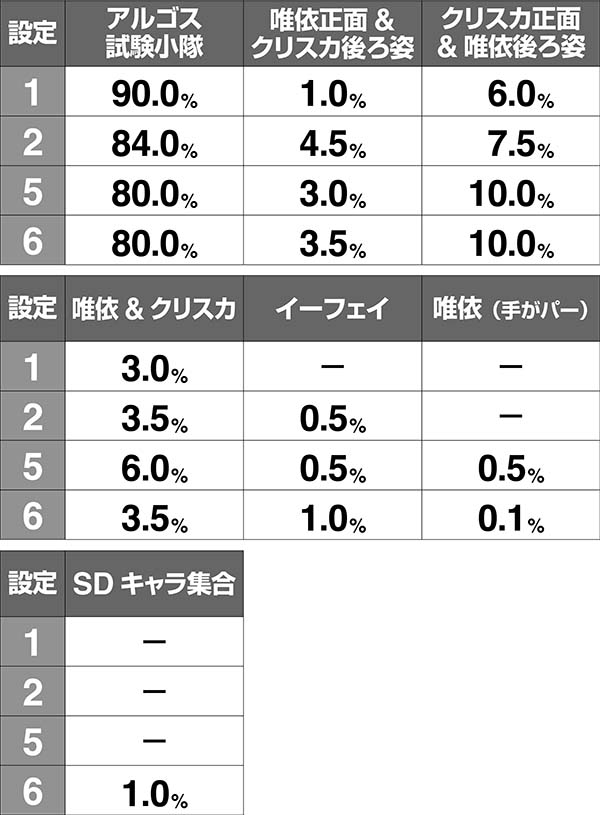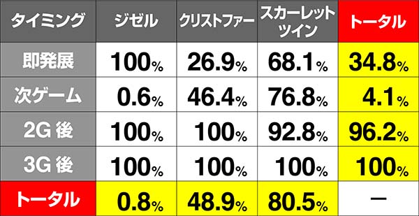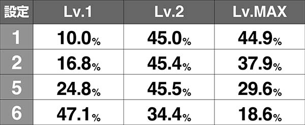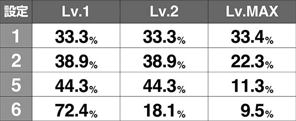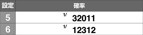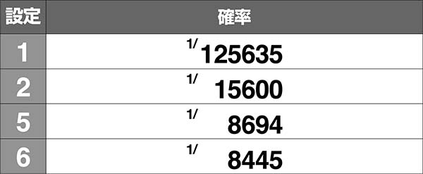 設定1での確率は12万分の1以下と激低なため、発生した時点で設定2以上が濃厚となる。