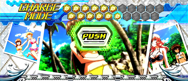 消化中は数ゲームおきに画面に赤いエフェクトが現れる。PUSHボタンまで出ればボタンを押すことで1枚絵が出現。パターンによって設定を示唆している。