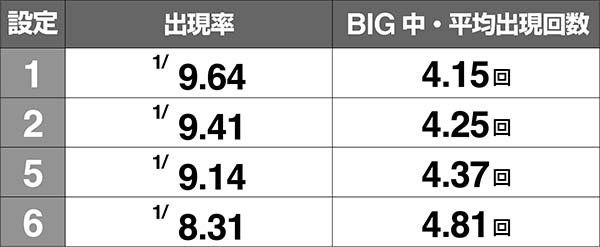 消化ゲームが長い分、BIG中の方が単純な出現回数は多い。