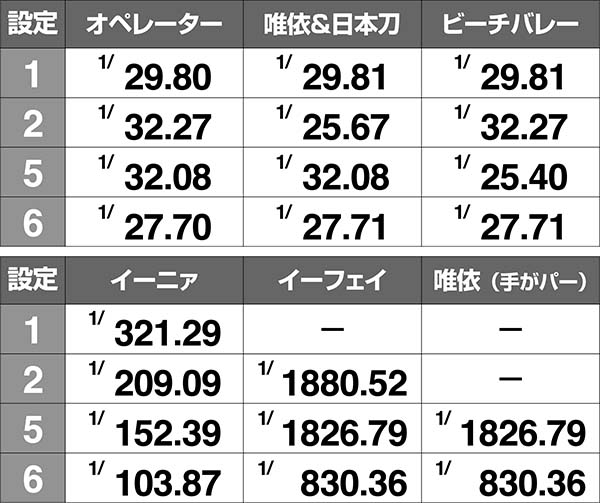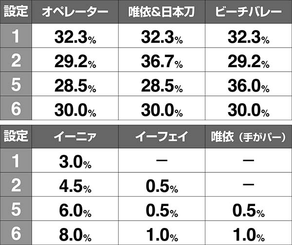 イーフェイなら設定2以上、手をパーにした唯依なら設定5以上確定。