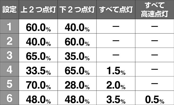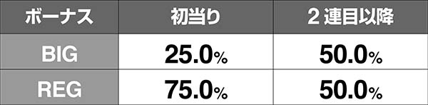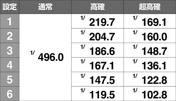 高確、超高確滞在時は高設定ほどボーナスに当選しやすい。差もそれなりに大きいので、初当り確率が設定推測の重要な要素となる。
