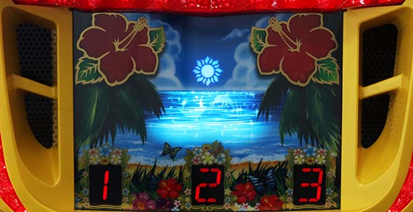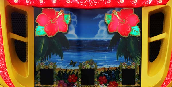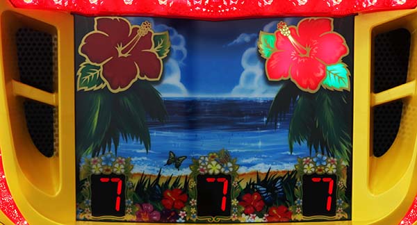 | 機種概要 | ハイビスカスが光ればボーナス確定と、演出はいたってシンプル。初当り後に移行する32G間の引き戻しゾーンでハイビスカスが光れば、ボーナス高確率状態の常夏チャンスへ突入する。ハイビスカスの光り方やサウンド変化など、普段と違う演出が発生すれば、引き戻しの大チャンス。シンプルな仕様ながら、大量出玉獲得への可能性を秘めた1台といえるだろう。常夏の風に誘われて、32Gのアツい時間がスタートする。 |