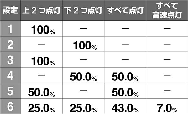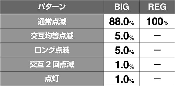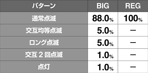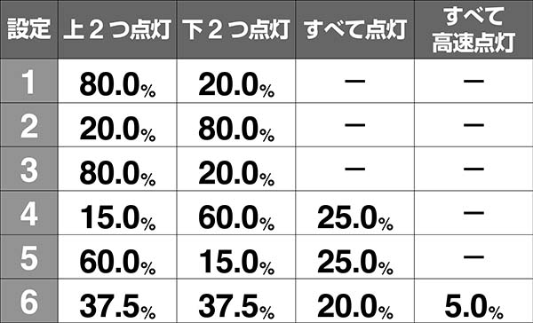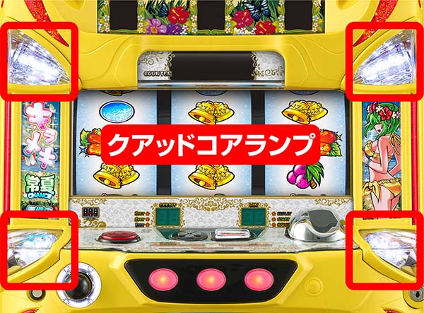 BIG終了時にPUSHボタンを押すと、クアッドコアランプが点灯。4種類ある点灯パターンで、設定を示唆している。
