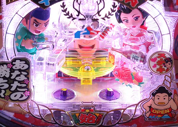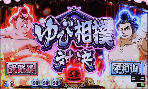 役モノでスタート入賞を狙い、デジタルで大当りを目指す「CR綱取物語~横綱7戦全力~」。 2つのルートを駆使し、役モノを突破できれば変動がスタート。液晶演出は3種類から好みのモードを選択でき、図柄が揃えば大当り(V入賞が条件)。 1度の大当りで約7000個(払い出し)を獲得できるうえに、リミット到達後は連チャンのチャンス。引き戻せれば再び16R×5回を獲得と、出玉力は正真正銘の横綱級!! |