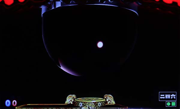 行司が持っている軍配に、タイミングよく玉がせき止められると杯に向かう。