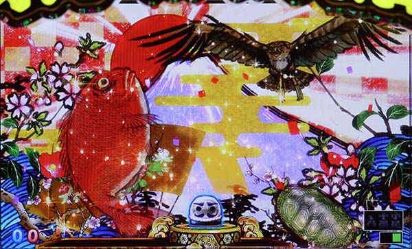 太陽が昇れば大当り!? 鯛や鷹などめでたい動物が総動員!!