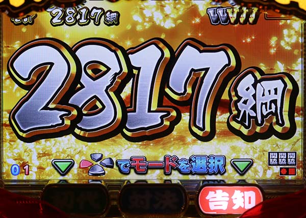 この台で戯れるなら、告知モードが一番楽しいです。 初代とか他のモードを楽しみたいなら、権利獲得後にまったり楽しめばよいかと思います。 告知モードが餃子以上にド派手で面白いです。