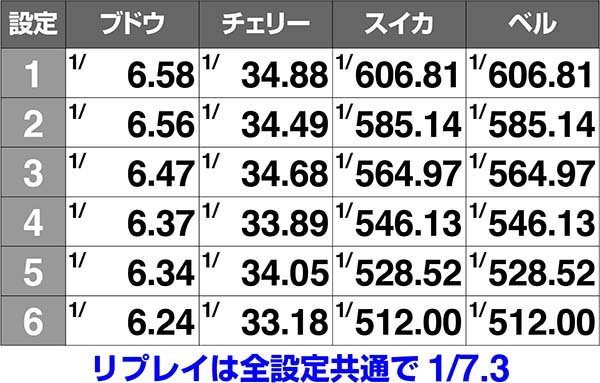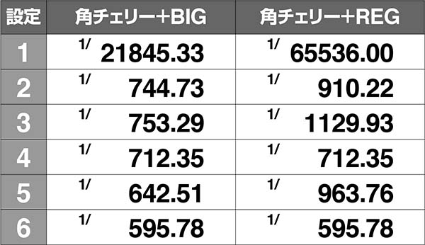 チェリー確率自体に大きな設定差はないが、同時当選確率には大きな設定差が存在する。