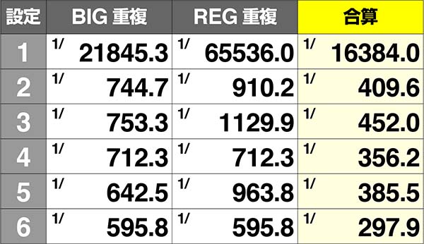 角チェリーとの同時当選が多いほど設定2以上の期待度アップ。とくにREG重複は設定差が大きいため、1度でも確認できれば期待大だ。