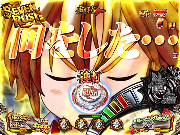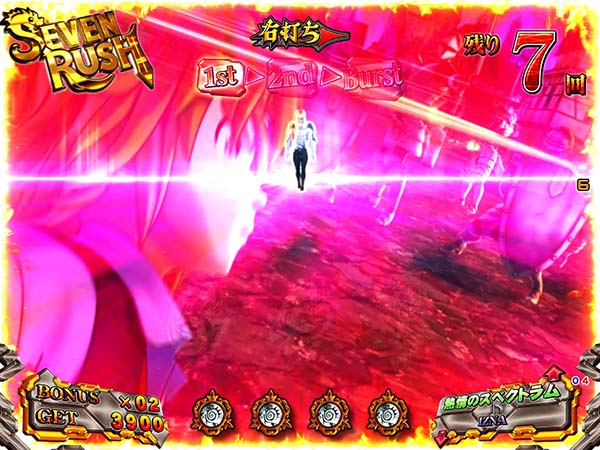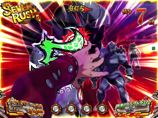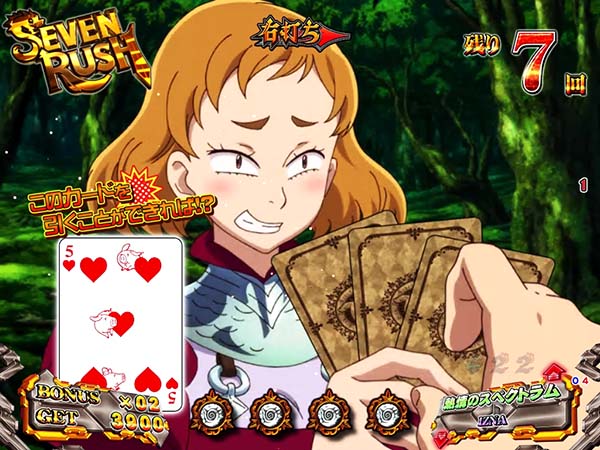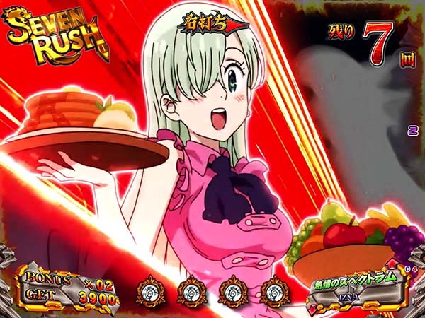 大人気コンテンツ「七つの大罪」が、1種2種混合タイプの新たな可能性を打ち出す!! ヘソ経由の大当りがすべて15R、電チュー経由の大当りも50%で15Rを獲得できるため大量出玉獲得も望めるスペックバランス。 連チャンゾーンのSEVEN RUSHは初当りの50%で突入し、初回突入時は時短99回転=連チャン濃厚!? 時短回転数は3段階となっており、99回転まで到達できれば連チャン濃厚だ。 |