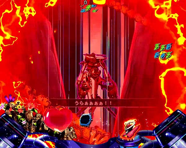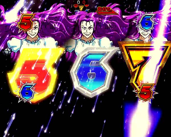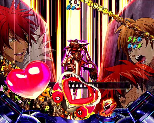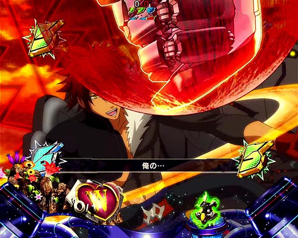図柄を斬る残像の色が赤、技が烈火爆裂蹴ならチャンスアップ。