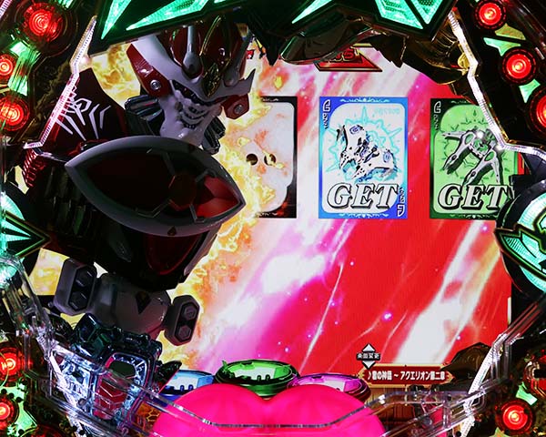 「アクエリオンEVOL」と「創聖のアクエリオン」の共闘がついに実現!! スペックは確変突入率65%のシンプルな確変ループタイプ。約2240個の16R大当りに加えて、消化中にも出玉の増加を図るエクスタシーポケットを搭載している。 役モノ、演出、ゲーム性にWの要素が詰め込まれており、確変中は懐かしの初代モードと新感覚のEVOLモードから選べる。 絶頂級の気持ちよさを味わいたいならW合体で決まり!! |
