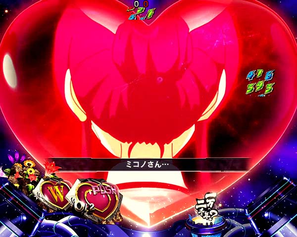 リーチ後のボタンPUSHから突入するハートアイコン獲得特化ゾーン。