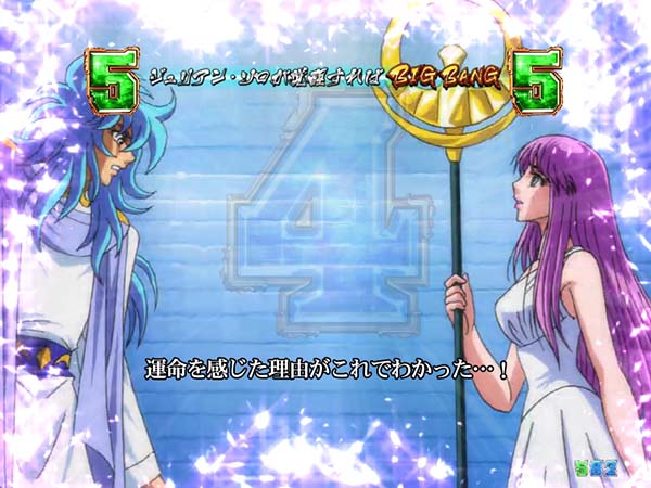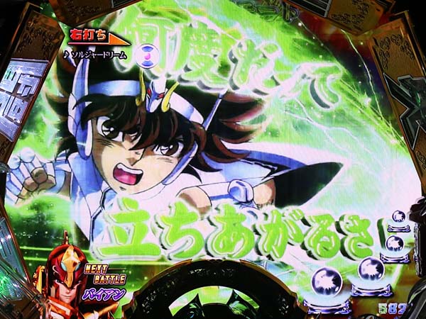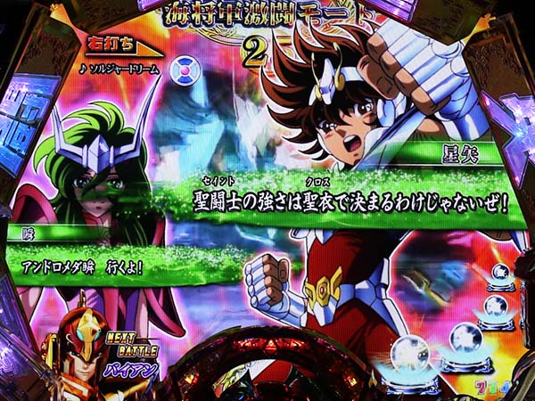 テンパイ後掛け合いの青銅聖闘士後に発生し、青銅聖闘士のバトルキャラがチェンジ。
