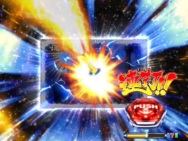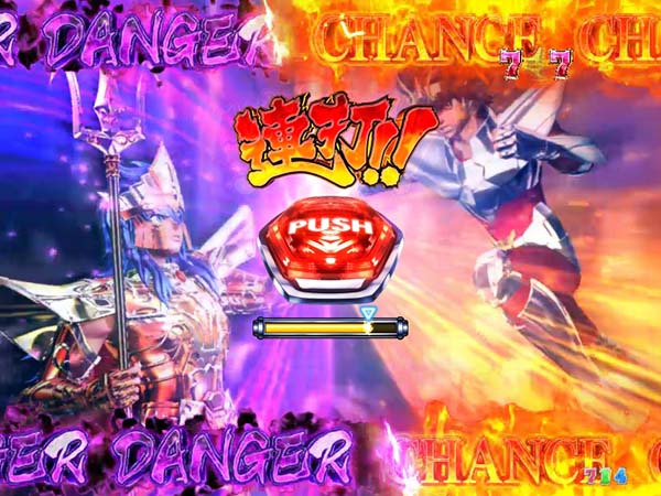 一撃必殺チャンスはボタンをPUSHし、役モノが完成すれば大当りとなる激アツ演出。