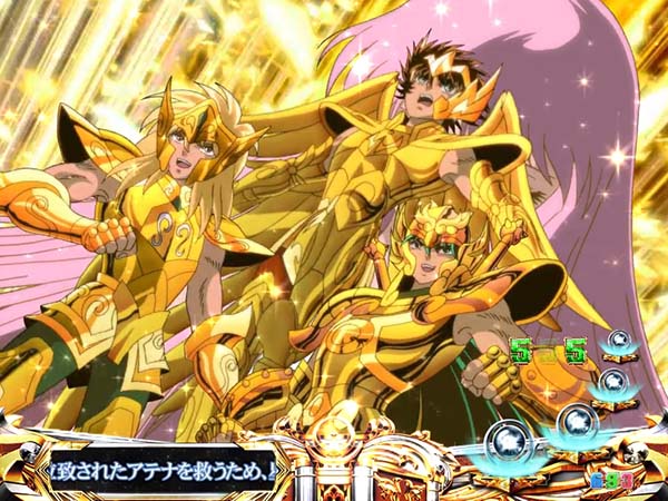 青銅聖闘士の勝利で大当り、敗北で転落&電サポが終了。