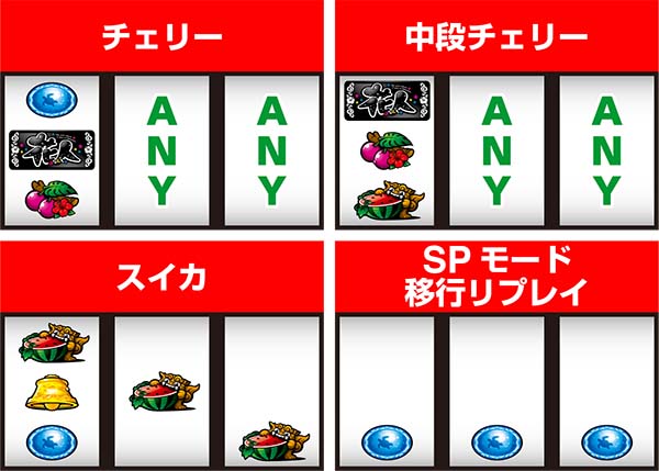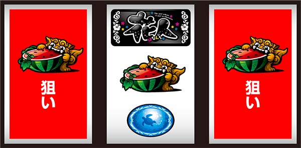 右リールでスイカを否定した時に下段リプレイが揃えば、ART当選&ストック大量獲得のチャンスとなるSPモードに突入する。