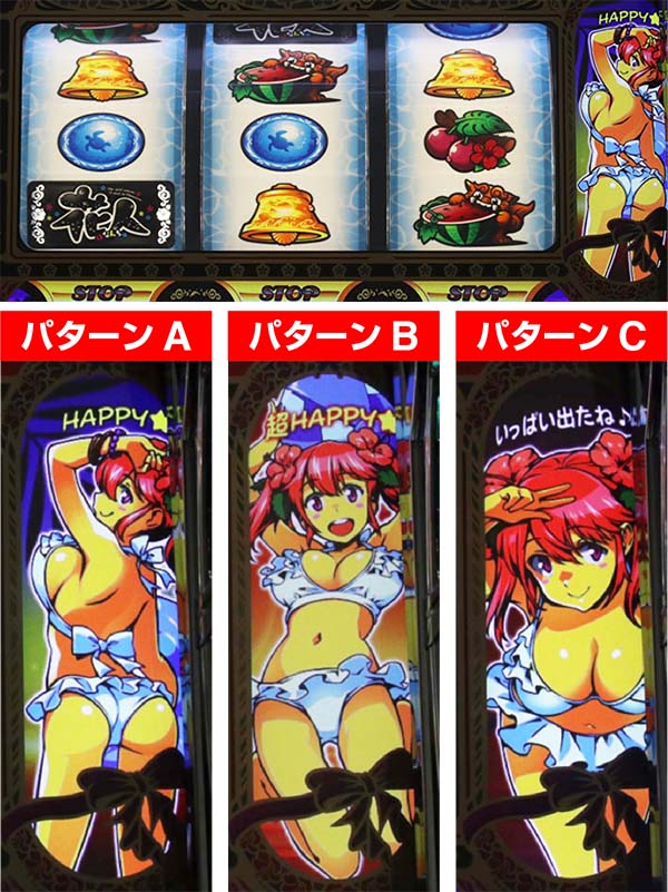 | 機種概要 | 1撃最大上乗せは33セットと、超絶怒涛のART継続性能が最大の魅力。基本的にボーナスから突入するARTは1セット40Gのセット数管理型で、おもに消化中のボーナスでストックを獲得していく。大量ストックの契機となる裏モードやSPモードなど、ロング継続に期待できる要素も数多く搭載。継続を祝福するナミちゃんランプや多彩な楽曲変化など、演出面にも多くの注目ポイントが用意されているぞ。 |