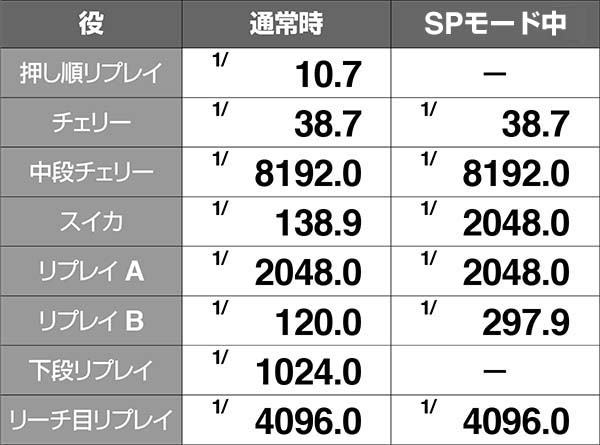 スイカ、チェリー、1枚役…超準備中なら約20%
