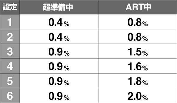 SPモード中にART当選すれば、ART準備中が“超準備中”となり、セット数上乗せ率が大幅にアップ。