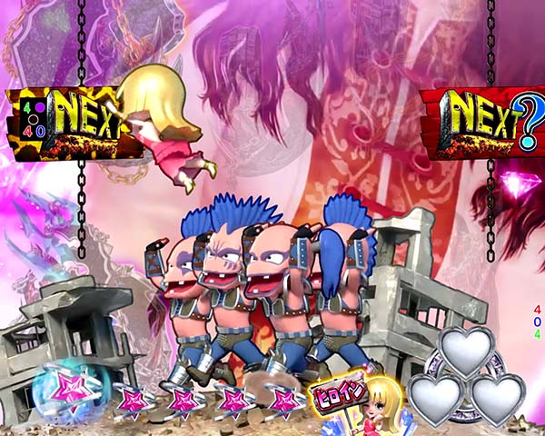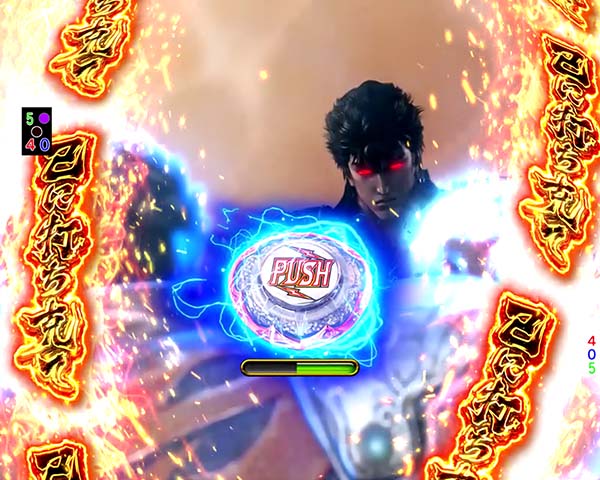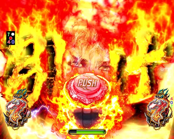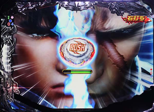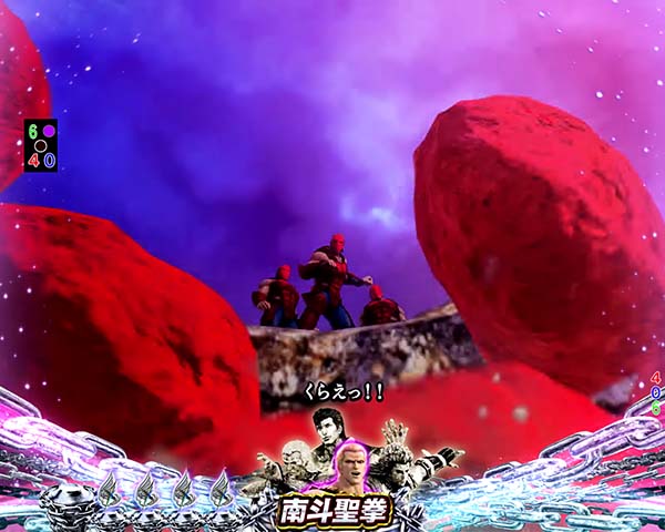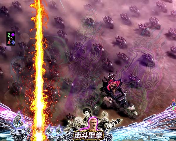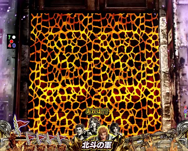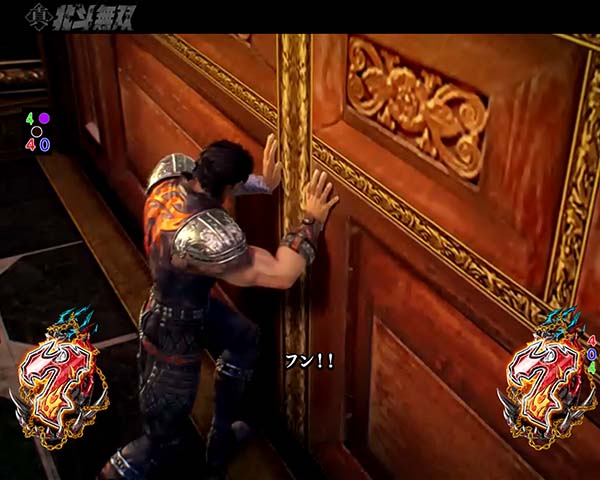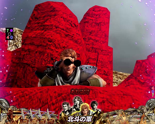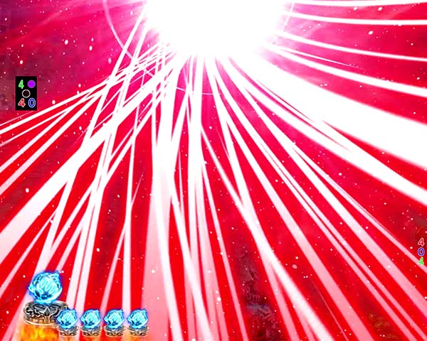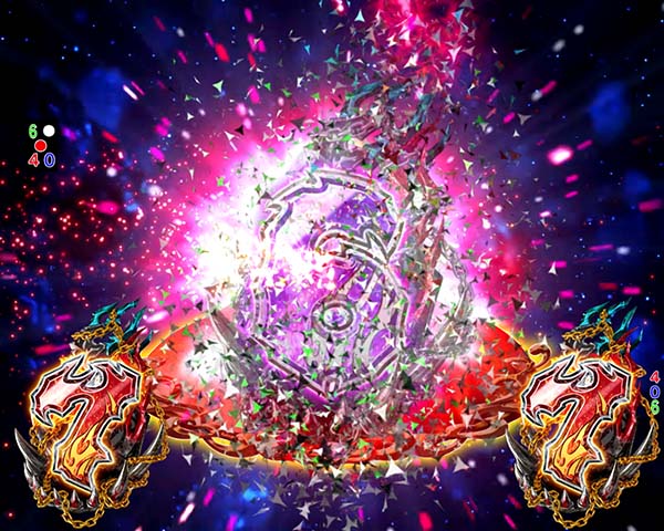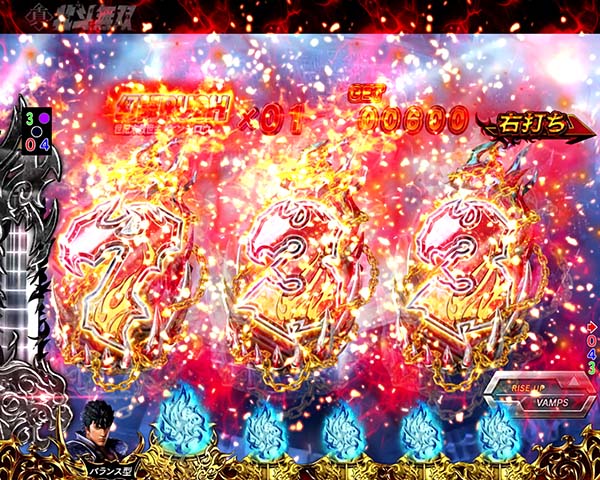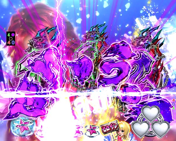 攻撃を避けたときなどに溜まる液晶左側のカルマメーターが、MAXに到達すれば確変大当り濃厚!?