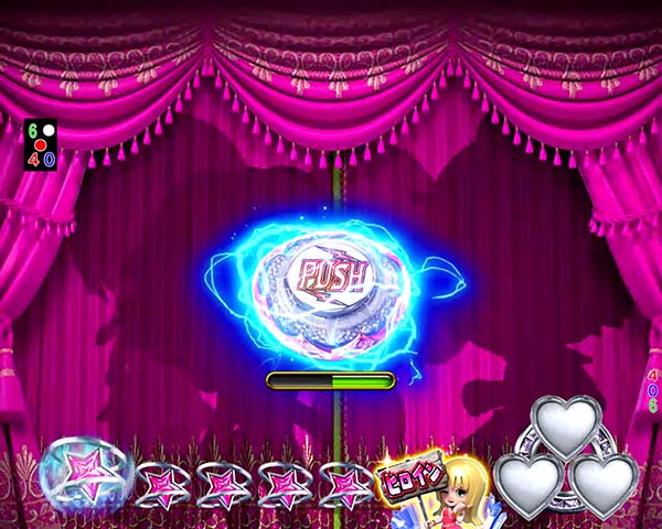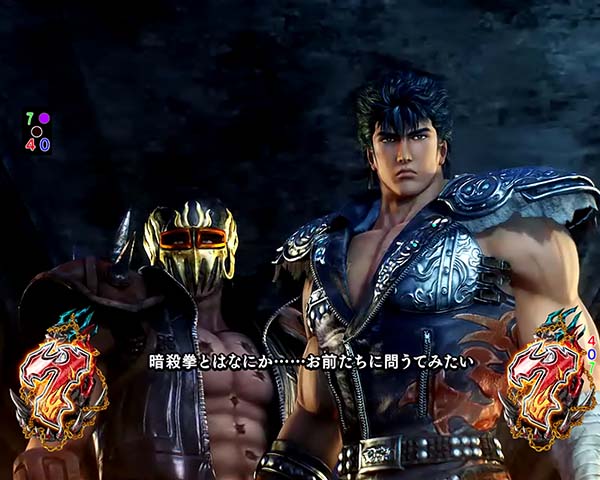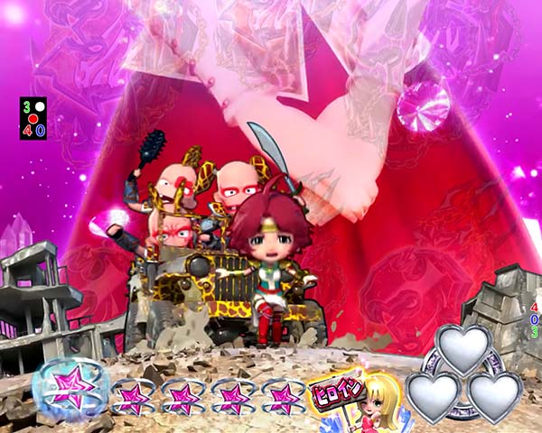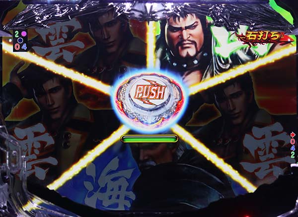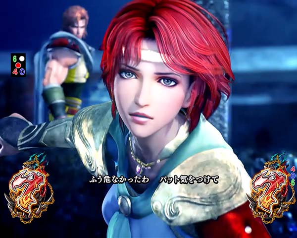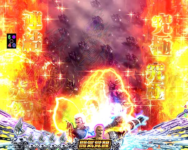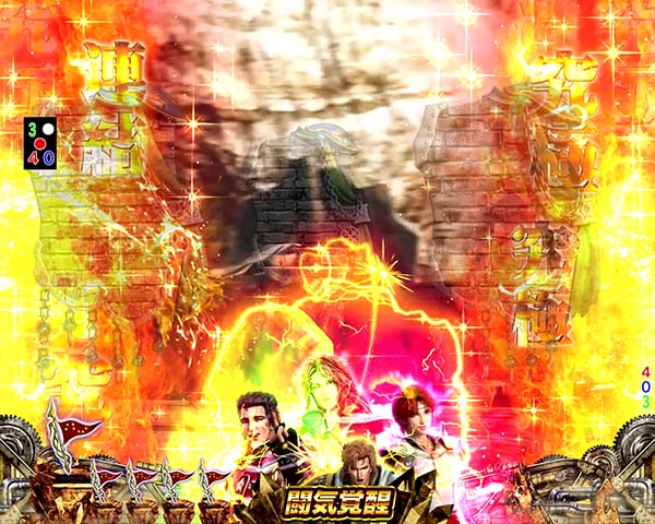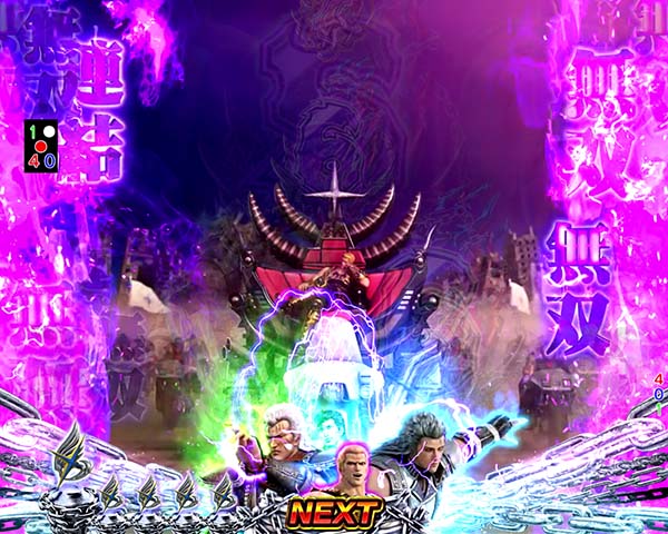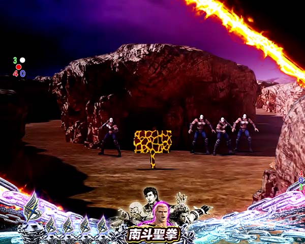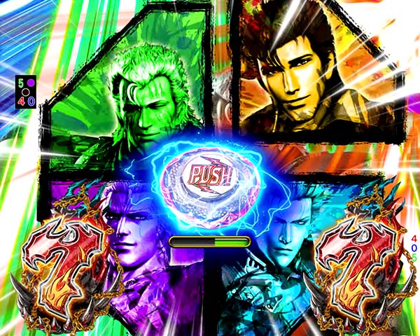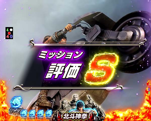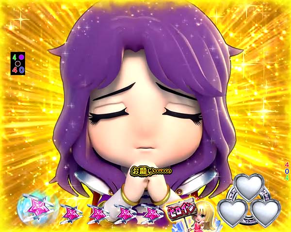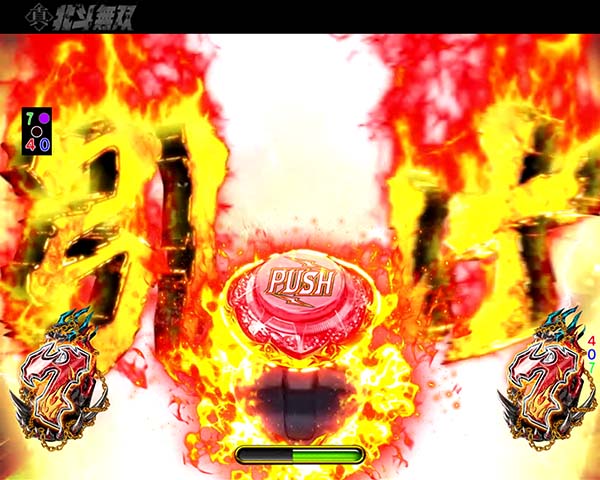 攻撃を避けたときなどに溜まる液晶左側のカルマメーターが、MAXに到達すれば確変大当り濃厚!?